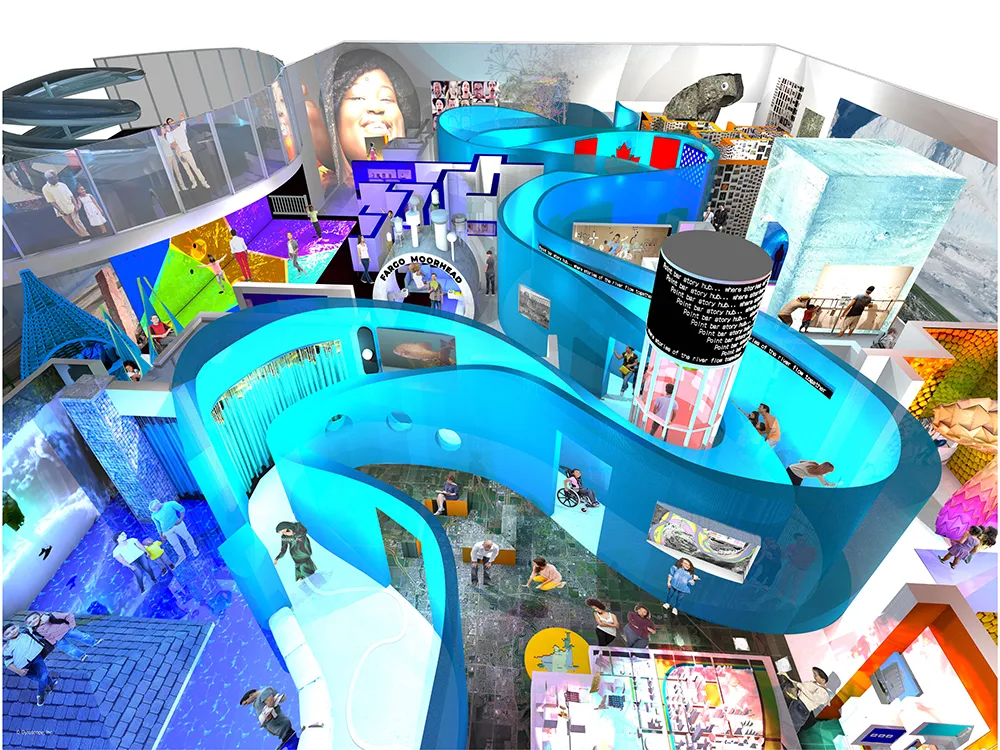 Breakthrough barriers to explore difference and connection together. The largest exhibit in FMSM will contain a collection of unexpected environments designed for exploration. Modeled after the Lindenwood section of the Red River, the meandering passage tracks water, people, wildlife, and stories through ecological and geographical borders. The river’s story is our story.